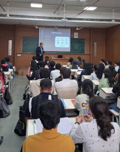 Prof JPN Mishra, Ex-Dean Central University Gujarat, from Prayagraj, Uttar Pradesh delivered an Expert Lecture titled ‘The Muscles: A key factor for maintaining Homeostasis’ on November 18, 2025 at E-403, New Building, Nirma University. Prof Mishra’s talk highlighted the crucial role played by the muscles in the human body. He elaborated upon how the voluntary and involuntary functions are inevitable for survival and discussed the common muscular disorders. The later part of his talk emphasized upon holistic well-being and how yoga can help maintain muscle health and functional efficiency. The Expert Lecture was coordinated by Dr. Amee Nair.